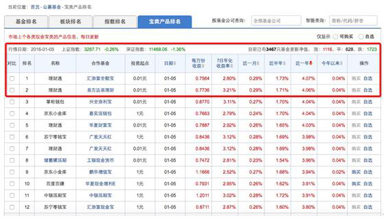 根据第三方财富管理机构好买财富计算的1月5日“宝宝类”产品排名,理财通货币基金产品-汇添富基金全额宝以近一年年化收益率4.07%夺冠,易方达基金易理财以近一年年化收益率4.06%位居第二,高于其他互联网平台的“宝宝类”产品。