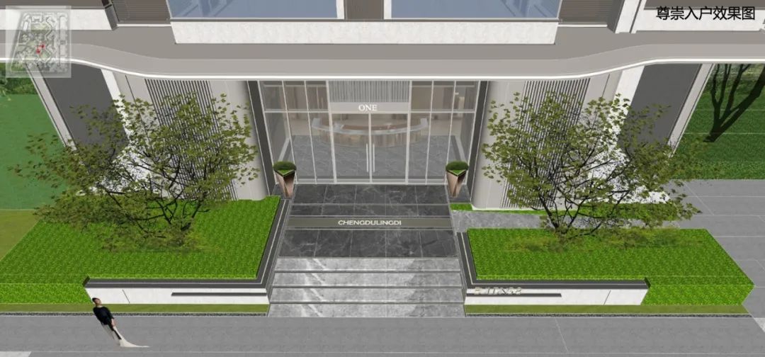 “一轴”是指小区的景观中轴,位于小区主大门后侧,主大门宽约45米,高约5米,采用银色金属格珊搭配深灰色大理石墙面,颜值相当高,第一眼看去就显得非常气派。步入大门后,迎面而来的便是整齐划一的树阵和充满艺术气息的水系景观,归家仪式感十足。