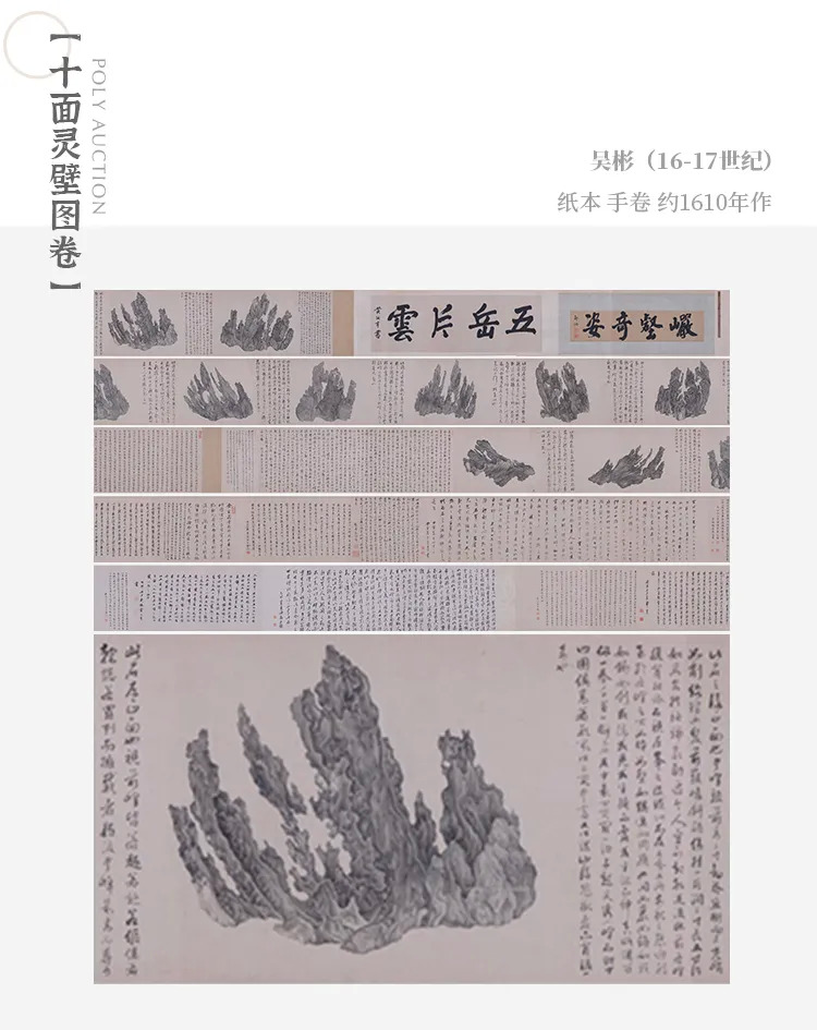 《十面灵璧图卷》是吴彬所有山水画中独一无二的一卷作品,更是中国美术史上的一个绝品。