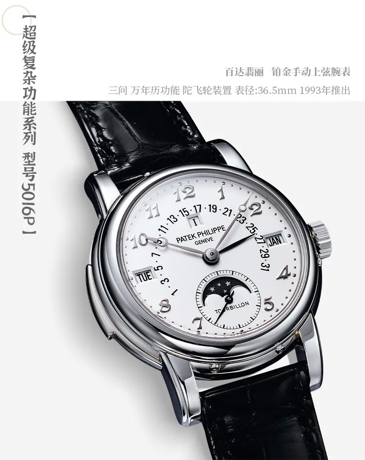 百达翡丽型号5016P,于1993年推出,在1993至2011年发行期间,仅生产不超过200枚,且大多为订制。