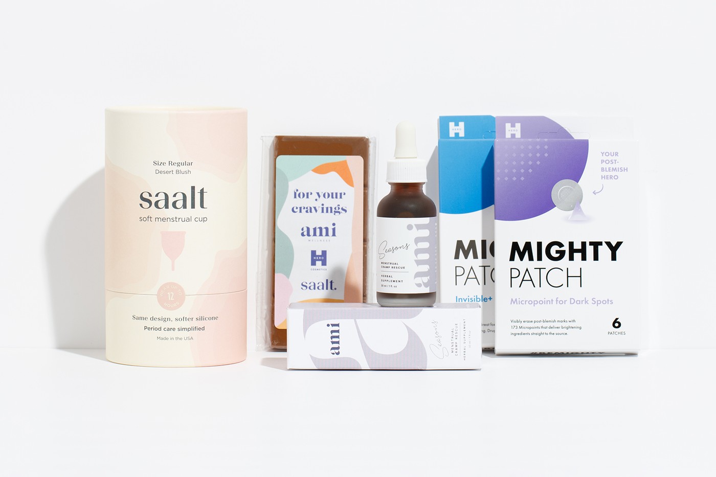 最近,月经杯品牌Saalt与美妆品牌Hero Cosmetic和健康食品品牌Ami Wellness合作推出了一个囊括经期必需品的套装。这个套装里有月经杯、缓解痛经的药物、治疗荷尔蒙痤疮的粉刺贴和巧克力,能够满足女性月经期间的需求。这款套装的部分收益将捐赠给非营利性组织I Support The Girls,向有需要的女性捐赠经期产品和内衣。