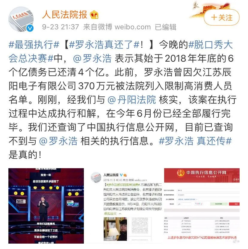 经人民法院报与丹阳法院核实,该案在执行过程中达成执行和解,在今年6月份已经全部履行完毕。中国执行信息公开网上,目前已查询不到与罗永浩相关的执行信息。