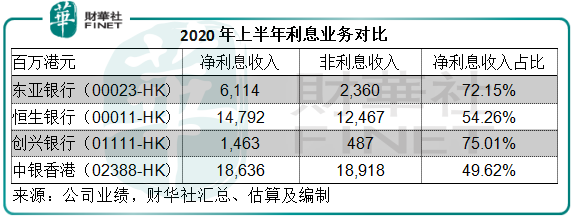 再来看业务,作为老牌香港银行,利息服务自然是东亚银行主要的收入来源。从2020年上半年的业绩来看,东亚银行的净利息收入占比达到72.15%,远高于同地区银行恒生银行(00011-HK)的54.26%,和发钞行之一中银香港(02388-HK)的49.62%。由此可见,东亚银行仍依赖于传统的利息业务,或意味着出售非利息业务对其业绩不会带来压倒性的影响。况且该行将可能签订长期独家保险分销协议,透过银行的分销平台为特定保险公司分销保险产品。