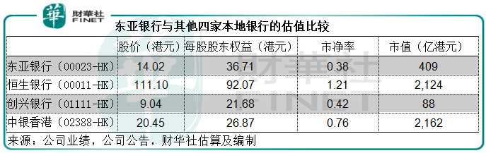 从上表的估值来看,东亚银行的估值是四家专注于香港市场的本地银行中的最低。未来重组之后腾出价值,能否带动价值的重估?我们继续张望。