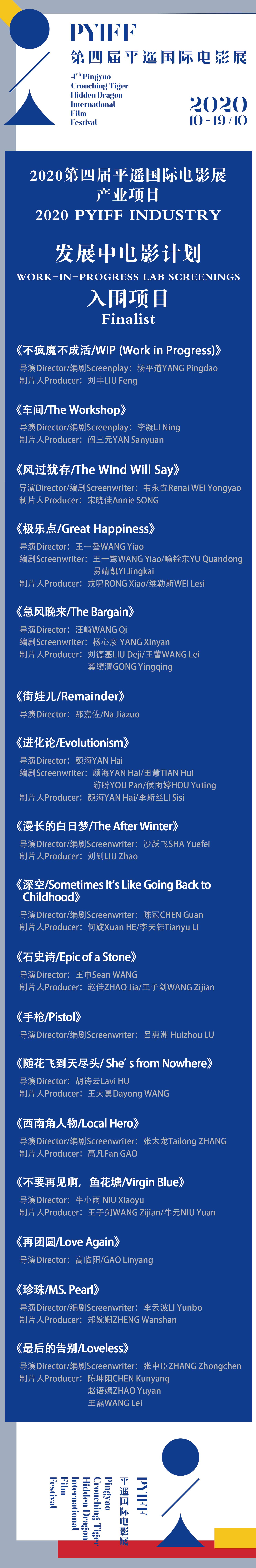 2020平遥国际电影展产业两大单元入围项目揭晓