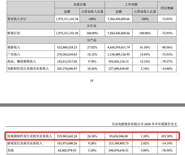 这个原因可以理解,从2017年万达电影收购新媒诚品至今,电视剧业务成为万达的亮点之一。2019年在影视行业整体走低的情况下,新媒诚品电视剧制作发行及相关业务收入在公司营业收入占比达到3.23%,而电影占比5.79%。2020年上半年,新媒诚品旗下的电视剧营收实现了455.30%的大幅增长。
