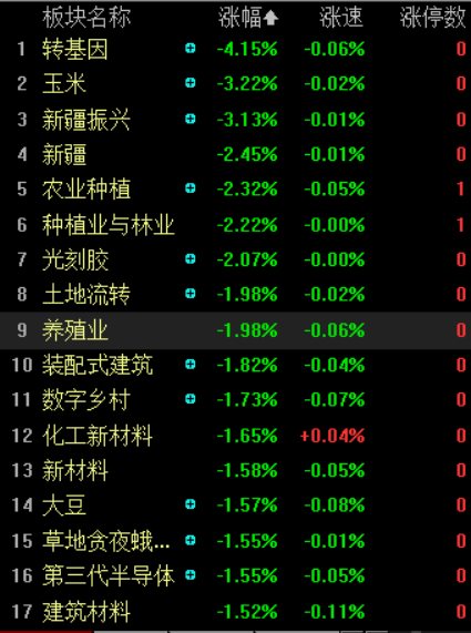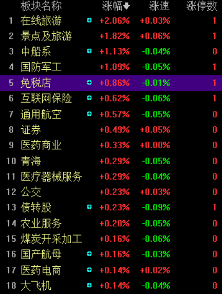 指数早盘冲高回落表现乏力,两市成交额继续萎缩,个股跌多涨少,逾30股跌超9%,市场亏钱效应较强,短线情绪持续冰点。疫苗、券商等板块集体冲高回落,军工、免税等题材盘中拉升,板块快速轮动,昨日强势的农业、新疆等板块大幅走弱,个股上,东方中科、精功科技等连板高位股开盘补跌,天山生物、豫金刚石等继续下杀,整体看,市场节前效应明显,资金逢高兑现欲望较强。盘面上看,旅游、军工、免税等板块涨幅居前,新疆、农业、光刻胶等板块跌幅居前。截至午间收盘,沪指跌0.24%,报收3215点;深成指跌0.06%,报收12809点;创业板指涨0.02%,报收2536点。沪股通净流出3.73亿,深股通净流入2.34亿。