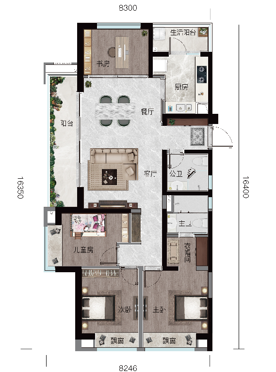 餐客厅一体化设计,采光面更大更宽,不仅提高了户型的使用效率,还增加了空间尺度感;同时,横厅为客厅和餐厅带来更多的可能性和多元化,可根据需求可改造成孩子的玩耍区、大人的健身区……