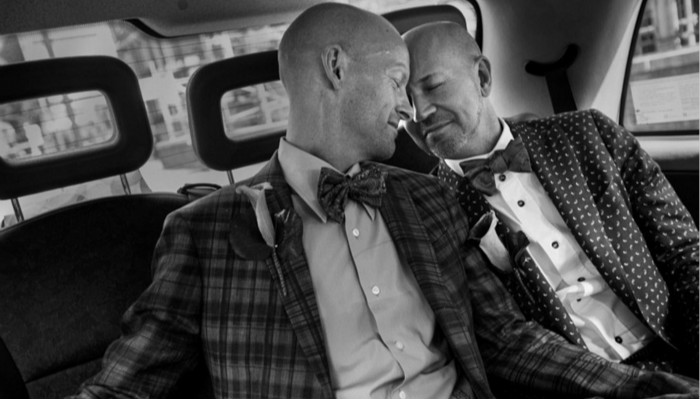 图中是霍华德(Howard)和罗利(Roly)。当时由于美国尚未承认同性婚姻,因此他们从纽约出发,远行3500英里前往伦敦,举办结婚仪式。