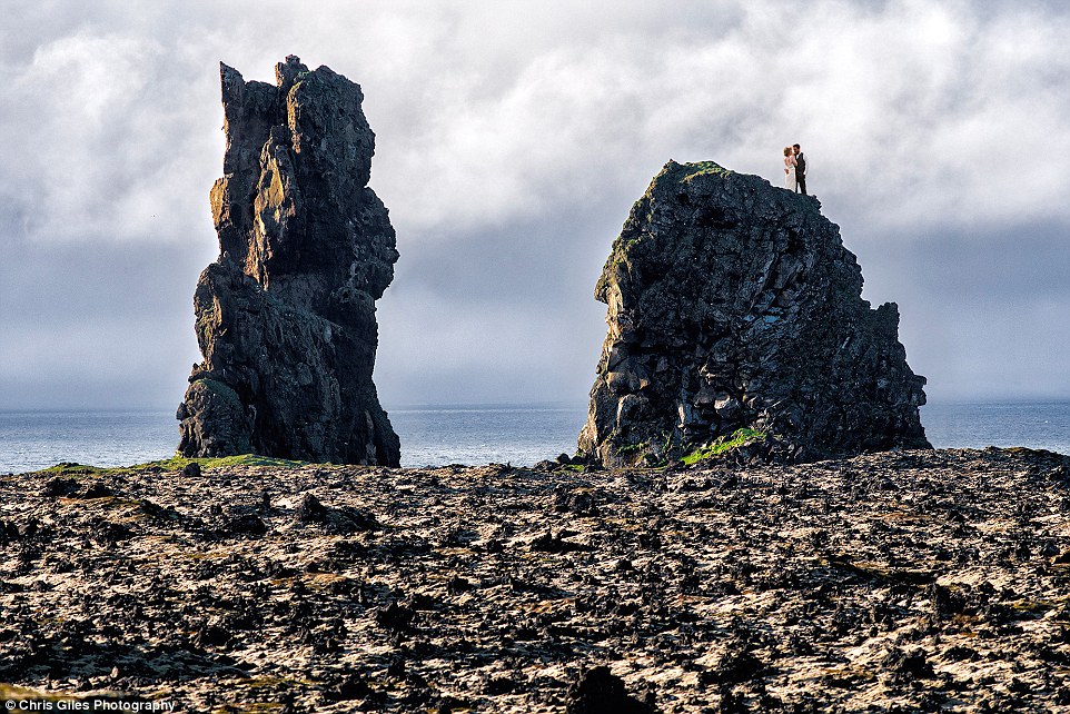 对于摄影师克里斯·贾尔斯(Chris Giles)来说,最打动他的是新婚夫妇艾达和塞缪尔的照片。照片中,他们二人努力爬上冰岛斯奈菲尔半岛(Snaefellsnes Peninsula)的一个悬崖的上面,拍摄下这张完美的照片。