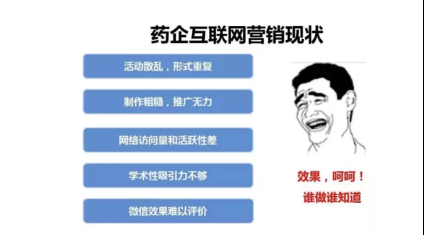 在目前互联网行业的蓬勃发展大环境下,来自互联网创新势头不能小觑,和互联网行业的营销模式相比,传统医药行业的营销模式依旧存在这3大痛点: