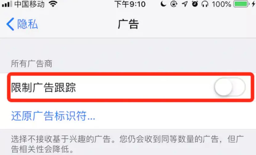 以苹果手机为例,苹果为每一台iPhone设备都设置了一个称之为IDFA(Identifier For Advertisers,广告标识符)的ID码,在安卓手机中也有类似的标识符,这个ID码其实还是用户个人信息的升级版,相比较于无法更改的手机号和手机设备识别号,IDFA至少是用户可以选择关闭的。