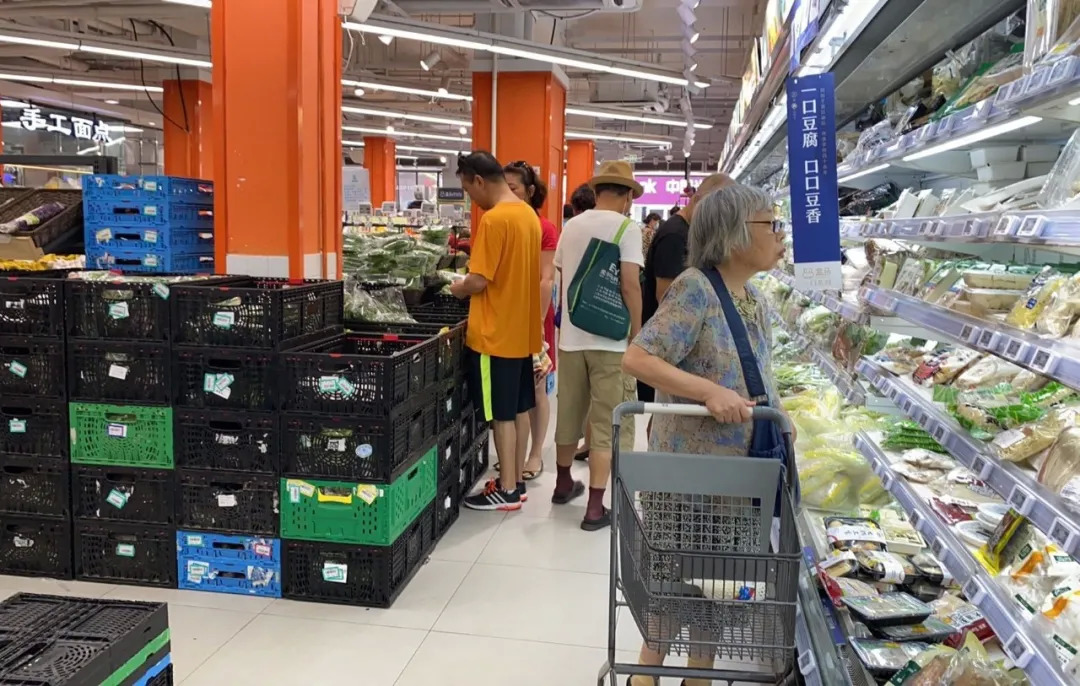 在一个工作日的上午十点多,上海浦东新区昌里路街边的一家盒马mini店内老龄顾客密集,生鲜类商品在这个500多平米门店内占据了大部分好位置,不少老年顾客驻足在冷柜前筛选、比价。