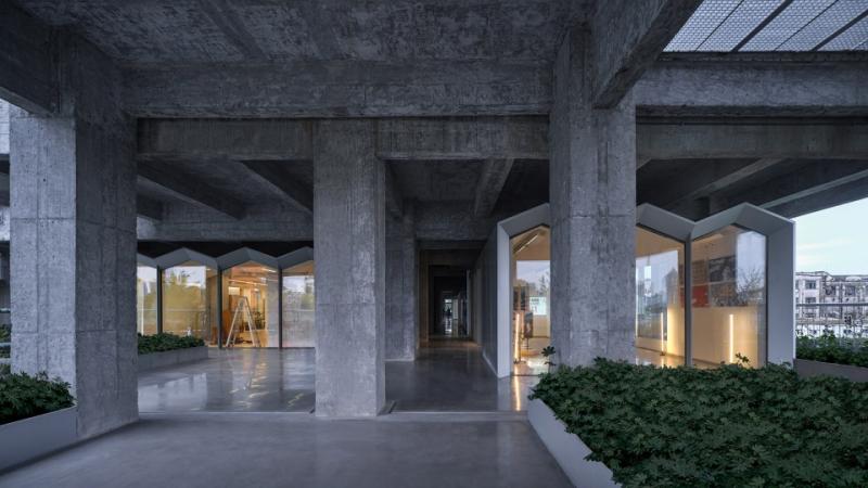 绿之“丘”并不单纯是形态意义上的“丘”。“原有的烟草仓库建筑是一个方正敦实的传统建筑,我们并不是依靠模拟山川丘陵的形态来切割,而是通过拆除原有维护墙体、重新调整建筑体量、回缩技术体边界等技术来修正。