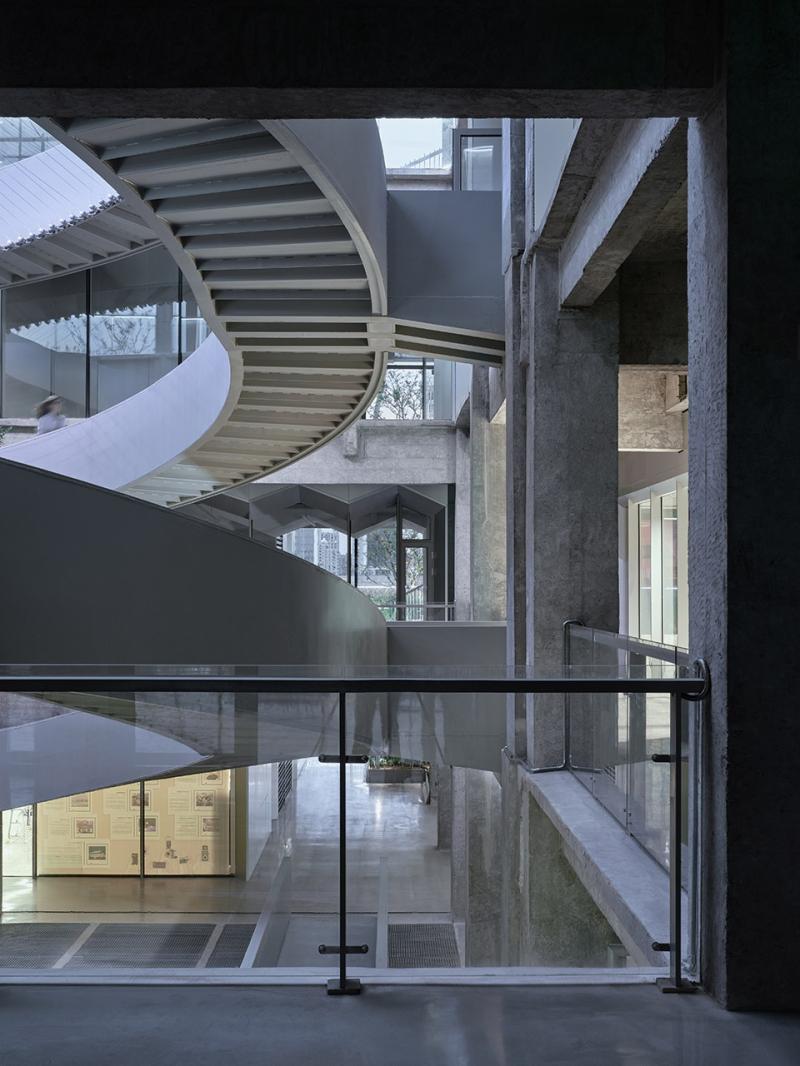 在修正的过程中,团队首先拆除原有仓库的第6层,降低建筑高度,并控制在24 米以内;再对巨大方正体量面向水岸和城市的正反两面各自做了削切,减少了50%的建筑体量,形成层层跌落的景观平台,在消解建筑形体对滨水空间压迫感的同时,也形成了由城市向滨水空间漫步的暗示。