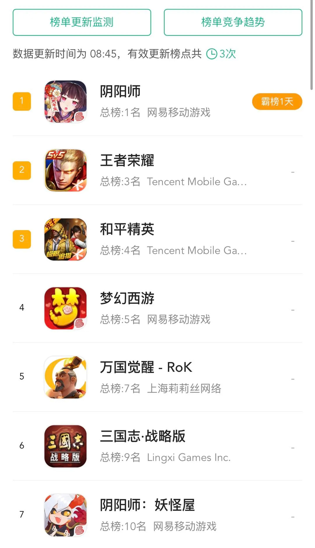 9月17日《阴阳师》IP全新衍生游戏《阴阳师:妖怪屋》全平台上线,根据数据平台七麦数据的排名趋势显示,游戏已经登顶IOS免费榜3天。