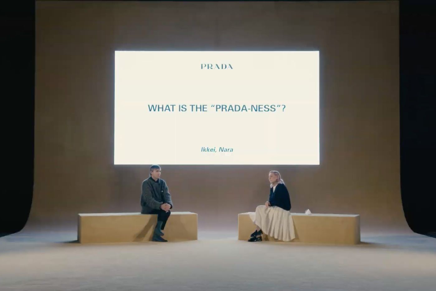 品牌创意总监Francesco Risso在完成设计后,以邮寄的方式将成衣寄送到居住于纽约、上海、东京、洛杉矶、伦敦、巴黎等城市的家人和好友手中,并让她们走上街头,以一种类似于接龙般的方式在线上直播中向看客们展现时装。