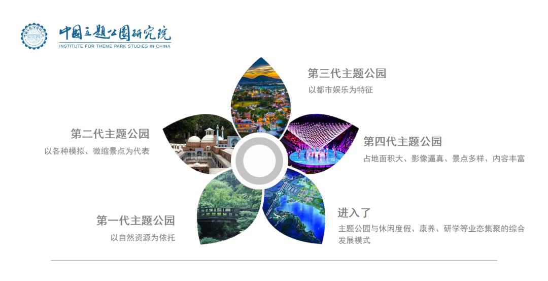 第一代主题公园其实是自然环境,第二代非常简单,就是各种模拟微缩景观,比如1989年11月在深圳开园的锦绣中华,是真正有主题的主题公园;第三代是以城市娱乐为中心的欢乐谷,有影院、有视频等项目,甚至有大量以游戏为主题的公园;现在第四代持续时间非常长,起码有20年,第四代占地面积大、影像逼真、观察景点多,内容丰富,包括迪士尼、方特、长隆,他们都属于这一范畴。