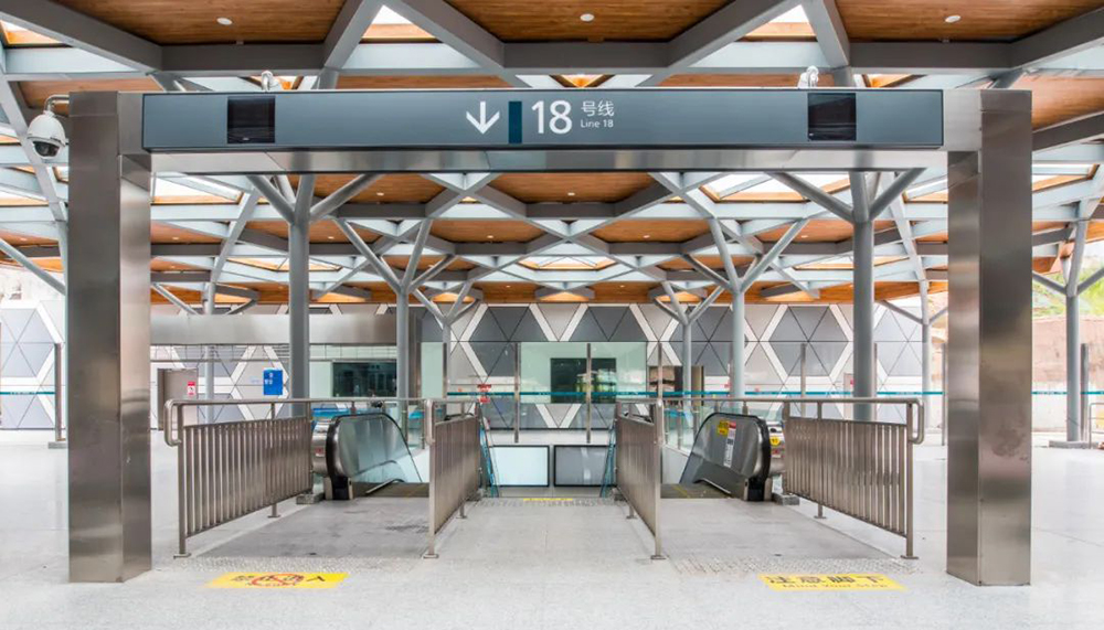 同时,18号线首开段的9座车站被设计成艺术车站,在设计上对天花、墙面、柱面、地面空间的进行整体构思,营造出流畅、舒适的建筑装饰艺术氛围。