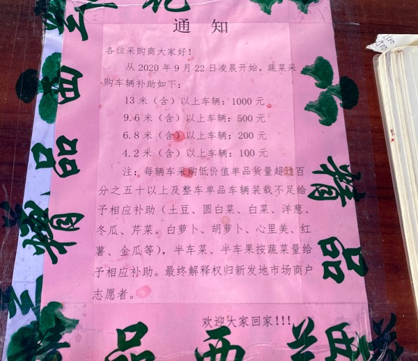 在北京新发地蔬菜批发区,界面新闻看到,几名前来领取补贴的采购者正在提供相应证件,其中一人称,补贴这几天变少了,前几天还能多拿200,不过总比没有强。