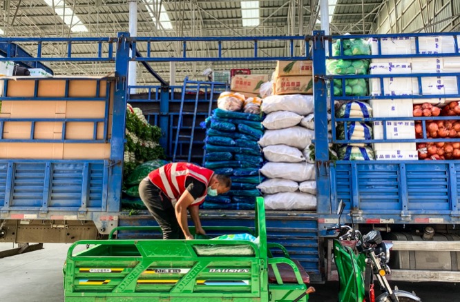 一名经营西瓜的商户告诉界面新闻,北京新发地差不多有70%的交易量来自北京之外的津、冀、鲁等外埠客户,这些客户多数是当地二级批发市场经营户,采购量大且稳定。