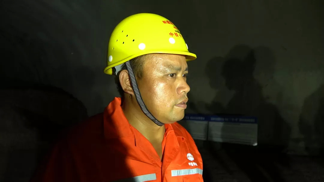 在棋盘山隧道中,电工王庭旺接受发现团的采访。王庭旺今年40岁,是广东韶关人,靠他一人的收入养活家中六口人。他有三个孩子,小儿子经常骄傲地对同学说:“我爸爸在广西修高铁隧道!”
