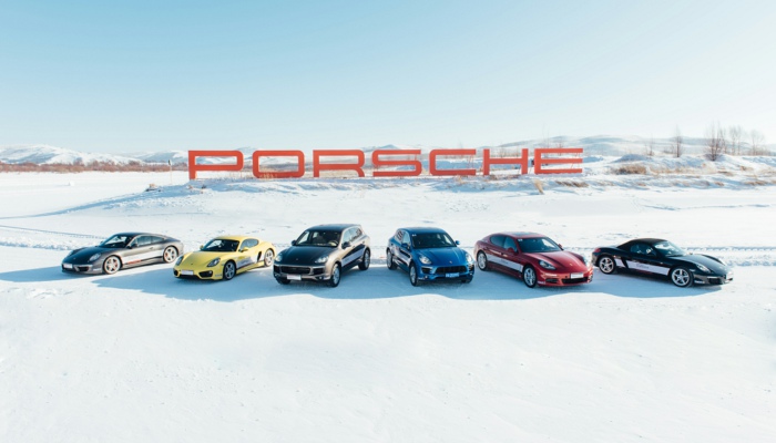 先来看看保时捷的车系,根正苗红的911、乐趣小跑Boxter/Cayman、豪华四门轿跑Panamera、SUV中的跑车王子Cayenne以及新科状元Macan。保时捷之所以能够提供独一无二的驾驶体验,奥秘就藏在这些车系里,有后置后驱的911 Cerrera S(RR)/后置四驱的911 Cerrera 4S(4WD),中置后驱的Boxter/Cayman(MR),前置后驱的Panamera S(FR)/前置四驱的Panamera 4S(4WD),以及同样前置四驱的两台SUV车型Cayenne S和Macan S,不仅如此,这些车型所装配的发动机有自然吸气、涡轮增压、水平对置、V6/V8等各种形式,把它们组合在一起,就构成了保时捷家族丰富的车型布局,你能够在冰雪上分别驾驶着各种驱动形式、发动机布局的车型,每一种车型开起来都大相径庭,每一款车型都能教会你不同的技巧。