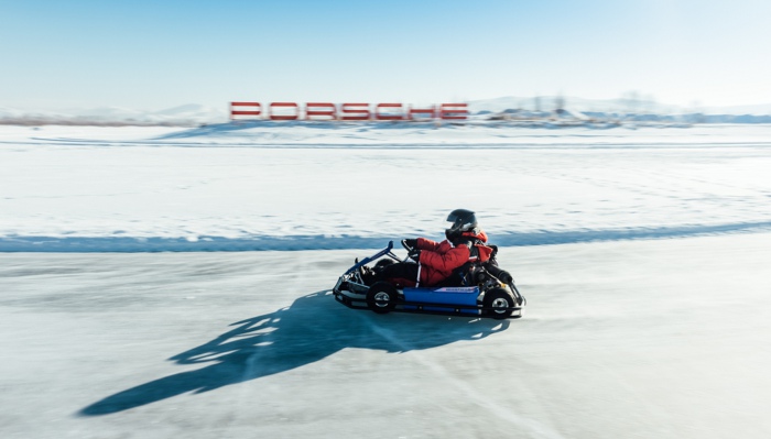 作为每年的保留项目,保时捷创造性的将卡丁车比赛也带到到了冰面上。完全不同于平时我们所开过的卡丁车,这项对抓地力有严格要求的运动突然到了附着力极低的冰面上变得别有一番乐趣,在冰天雪地里迎风驰骋,尽情的享受漂移的乐趣,各路选手也是相互刷圈,拼得你死我活。