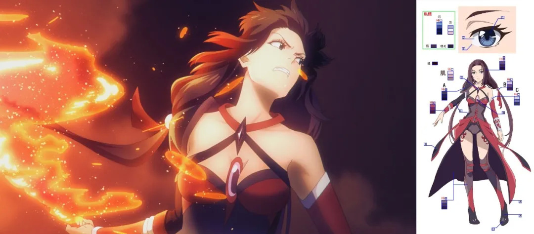 例如在本季人物设计完成后,会用三维软件制作一个等比例的角色基础模型,保证作画可以更加真实的还原演出所需求的镜头感;本季人物的颜色设计都由专职岗位的色监来把控,会根据每一场场景的光影,色相,情绪氛围的不同做实时调整。