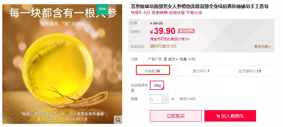 青眼也注意到,当前这些添加了真人参的产品虽并未卖出高价,但差距也不小,同样是100g的净螨皂,有的39元,也有要价109元的情况。