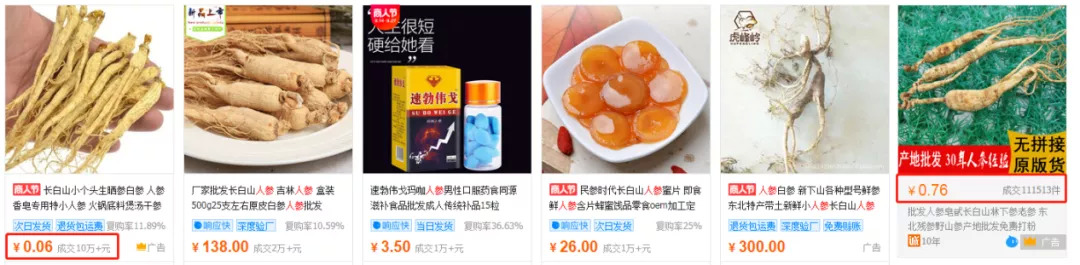 更何况,“人参不值钱”,且处理难度也不高,成本和风险对企业来说是可控的。青眼在1688阿里巴巴采购批发网就发现,几毛甚至几分钱的“人参”比比皆是。一化妆品OEM企业相关人士则告诉青眼,真人参大小不一,价格也可能会有点不同,他还透露“之前好多客户做过仿的”。