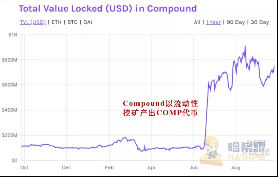 Compound近一年来链上锁仓情况(数据源自:DeBank)