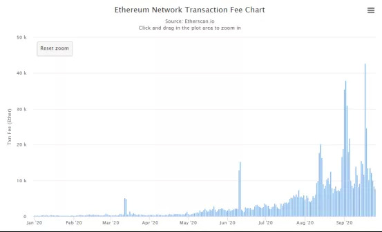 以太坊网络交易手续费用的变化情况(数据源自:Etherscan)