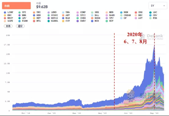 二、从六月暴涨到九月暴跌,DeFi热度快速衰退