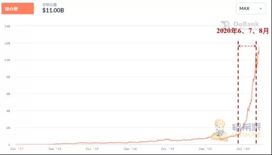 DeFi项目从2017年7月至今的总锁仓量变化情况(数据源自:DeBank)