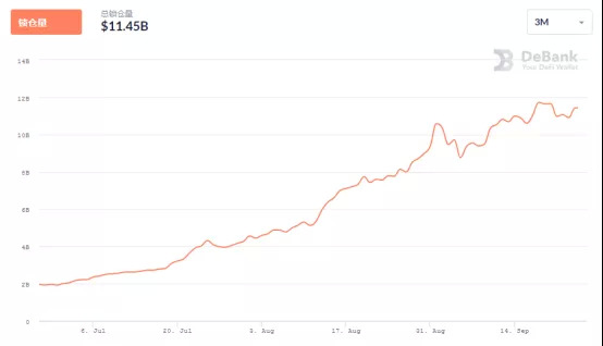 近三月来DeFi项目的总锁仓情况(数据源自:DeBank)