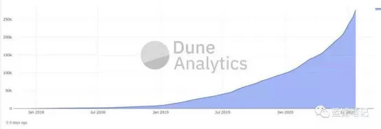 DeFi用户的增长情况(数据源自:DUNEANALYTICS)