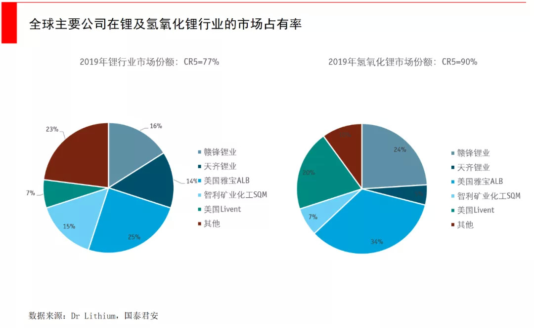 中国的两大锂业巨头天齐锂业和赣锋锂业,也在积极布局,总计占有全球30%的市场。