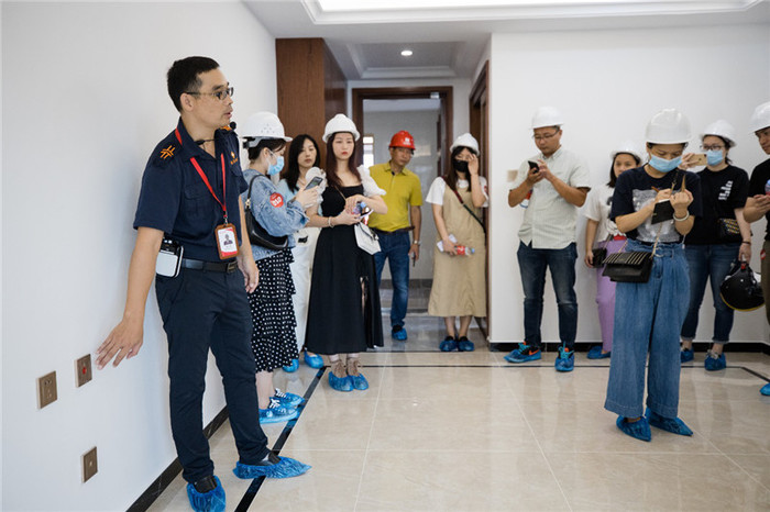 为让到场的每位来宾和业主能够全面感受彰泰·凤岭江湾的魅力,特别安排了专业人员进行全程讲解,悉心讲解建筑的工艺工法,专业高素质的作业队伍,严格遵照标准化施工工艺流程,让业主在知悉项目的基础上,对品牌认可度更高。
