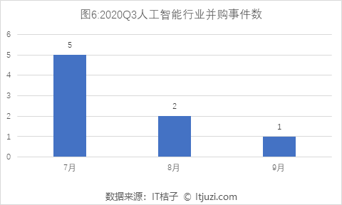2020 年第三季度,我国人工智能行业共发生 8 起并购事件,七月有 5 起,8 月发生 2 起,9 月发生 1 起。