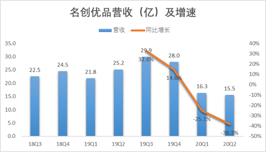 营收增长也因此被拖累。从下图可以看到,其实在疫情爆发前名创优品的营收同比增速就已经下跌至14.6%。