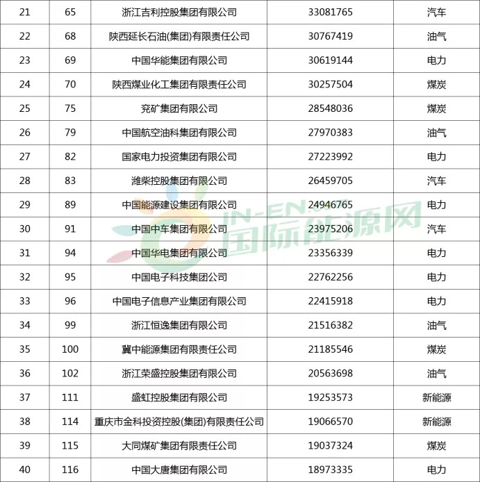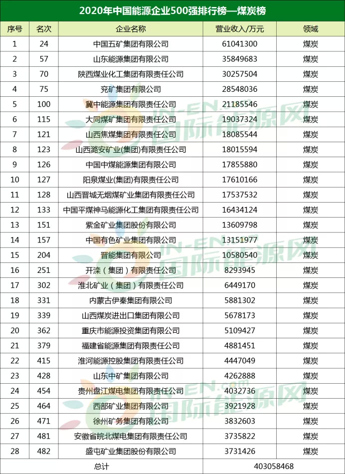 此次共有28家煤炭类的企业上榜,其中中国五矿集团有限公司以6104.13亿元的收入位居煤炭榜第一,排在末尾的是盛屯矿业集团,总营收仅373.426亿元。