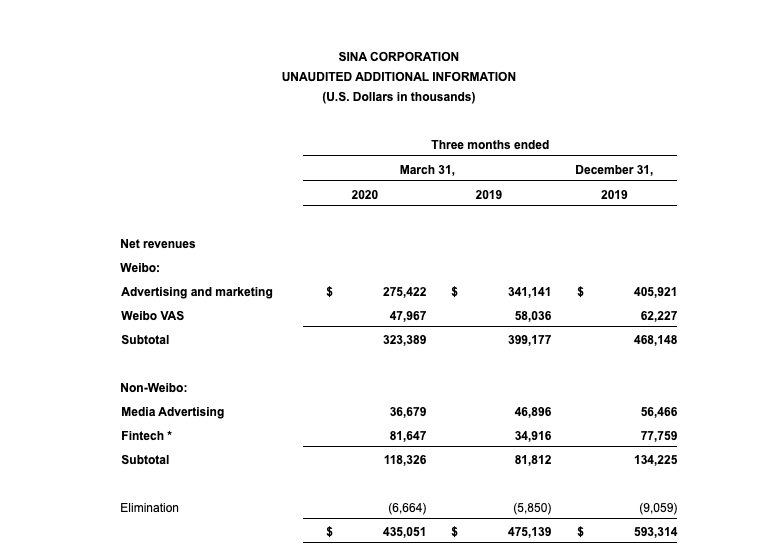 而新浪一季度总营收为4.351亿美元,同比下降8%。