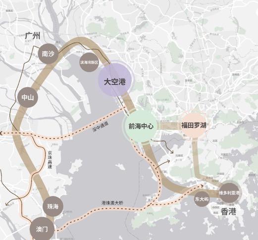 未来将对标世界一流城市如纽约、旧金山等,吸纳世界各地的客流、物流、资金流、科技流等优质生产要素,最终蜕变成为大湾区发展核心动力引擎。