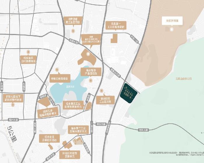 项目落址拥有“宝安第一山”之称的凤凰山森林公园旁,西眺伶仃洋,南瞰深圳湾,占据深圳西海之滨绝对的生态资源优势。同时,周边还有立新湖公园、人才林公园环伺,山林湖海景观优渥,堪称是大湾区不可多得的生态极点。