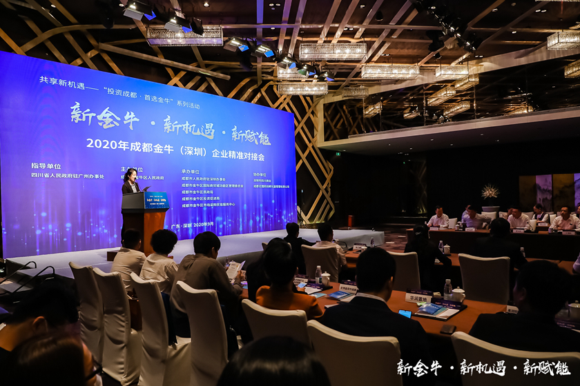 2020年9月29日,“新金牛·新机遇·新赋能——成都金牛(深圳)企业精准对接会”在广东深圳成功举行。活动旨在聚焦经济高质量发展要求,瞄准产业链高端和价值链核心,围绕产业功能区和产业生态圈建设,以传统产业转型升级和新兴产业培育壮大思路,突出重点产业、聚焦重大项目、针对重点区域、搭建重要平台,推动深圳企业投资西部、落户金牛,为金牛经济高质量发展赋能蓄力。