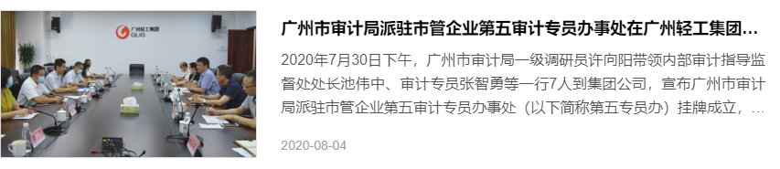 随后的8月30日,广州市审计局派驻市管企业第五审计专员办事处(下称第五专员办)在广州轻工集团挂牌成立。