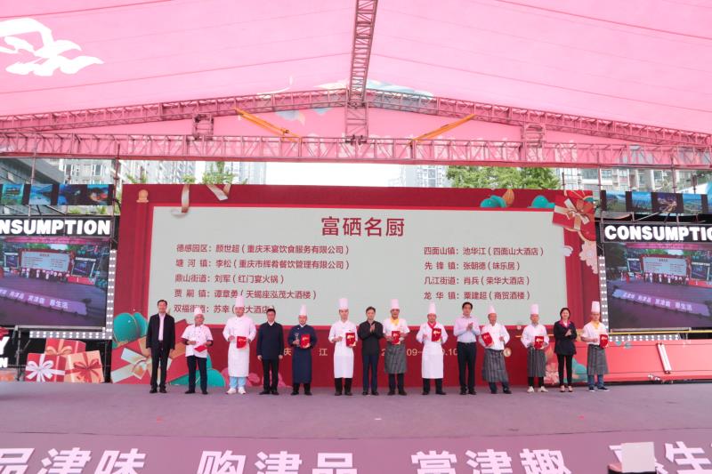 当天,主办方为第六届富硒美食文化节最终评选出的十佳富硒特色菜、富硒名厨等6个奖项进行了颁奖,10余家区内商贸企业代表现场发起“诚信经营、文明服务”宣言和“节约粮食 拒绝浪费”倡议。“进出口商品展区”“特色商业区”“东盟特色商品展区”“家居家装产品展区”“消费品工业展区”“消费扶贫展区和双城经济圈展区”“富硒商品展区”等七大主题展区推出多重实惠,吸引了不少市民前来采购。除了元帅广场主会场,主办方还在双福时代广场设置了汽车展区,举行“约惠津秋”汽车消费节。即日起至10月2日,市民可到现场了解诸多购车优惠。