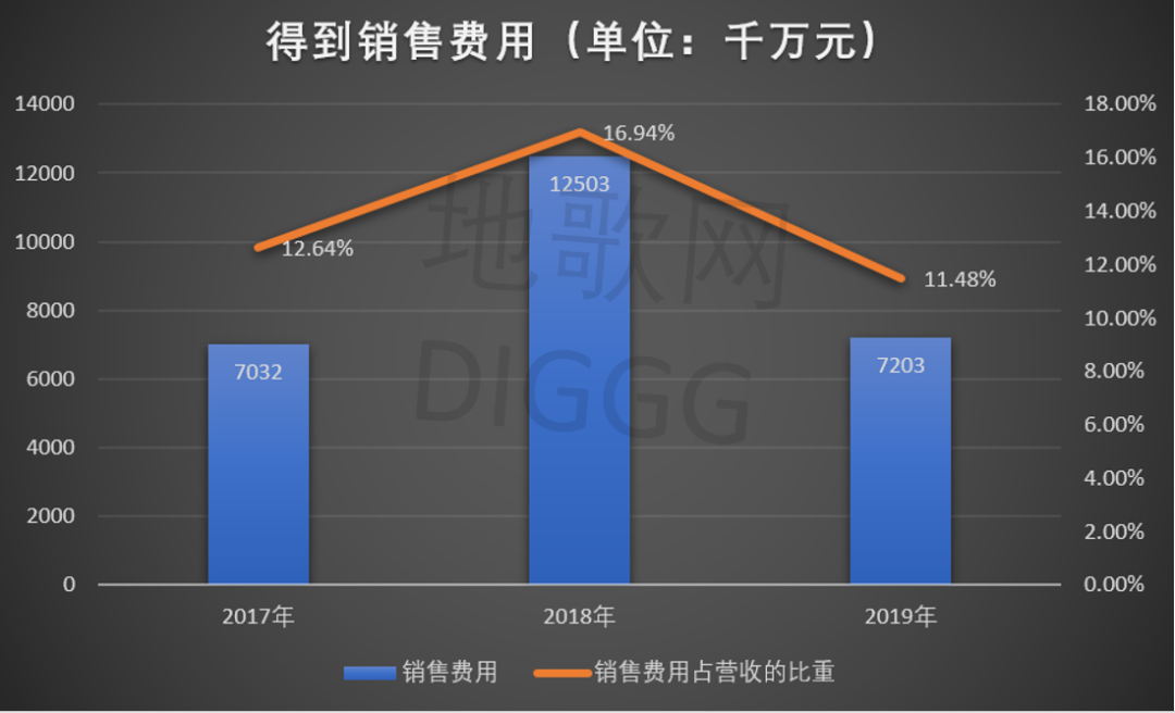 得到2017-2019年的销售费用,地歌网制图