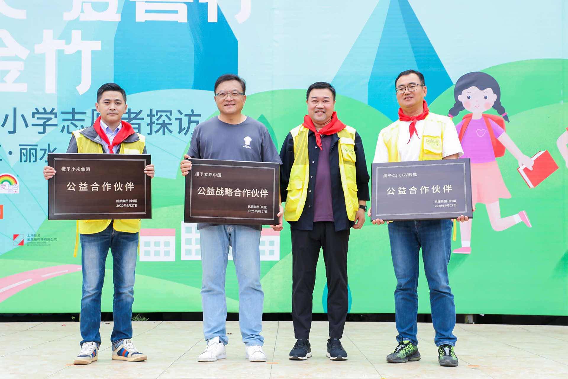 除了校园建设、学习用品等帮助外,凯德更希望看到孩子们身心有益健康成长,因此凯德联合员工、合作企业等加入到了这场“爱的接力”。公益合作伙伴CJ集团旗下的CGV影城向金竹凯德希望小学的师生们捐赠了220份电影周边,小米集团则捐赠了3000支小米巨能写。同时,CGV影城代表CJ China副总裁朴恩模、小米集团浙江省分公司总经理洪捷等作为合作伙伴代表共同现身金竹出席活动。